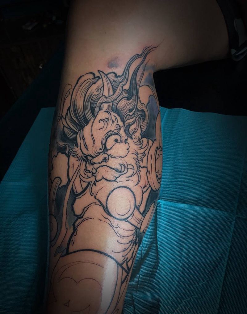 • T网红王老大花腿龙纹身图片_腿部新传统纹身图案