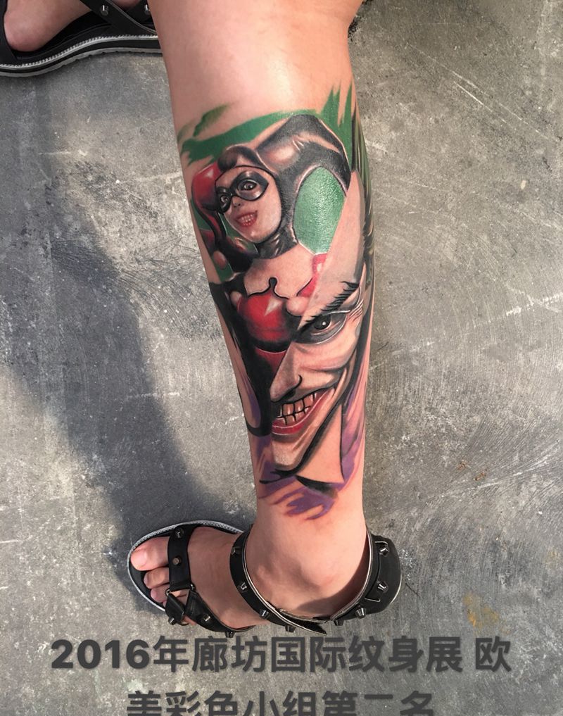 • T网红王老大花腿龙纹身图片_腿部新传统纹身图案
