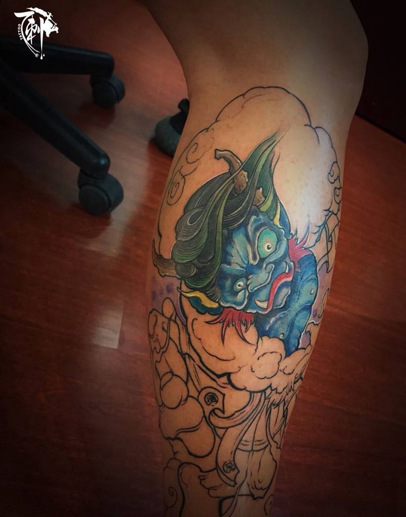 • T网红王老大花腿龙纹身图片_腿部新传统纹身图案