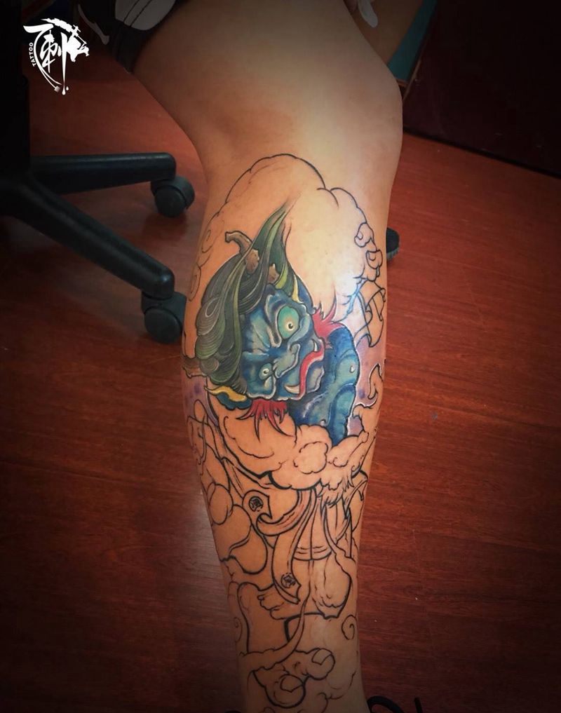 • T包小腿吹火男+阿多福纹身图片_腿部老传统新传统吹火男阿