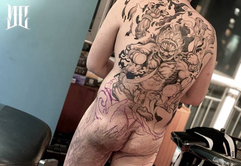 • 黑灰满背纹身图案