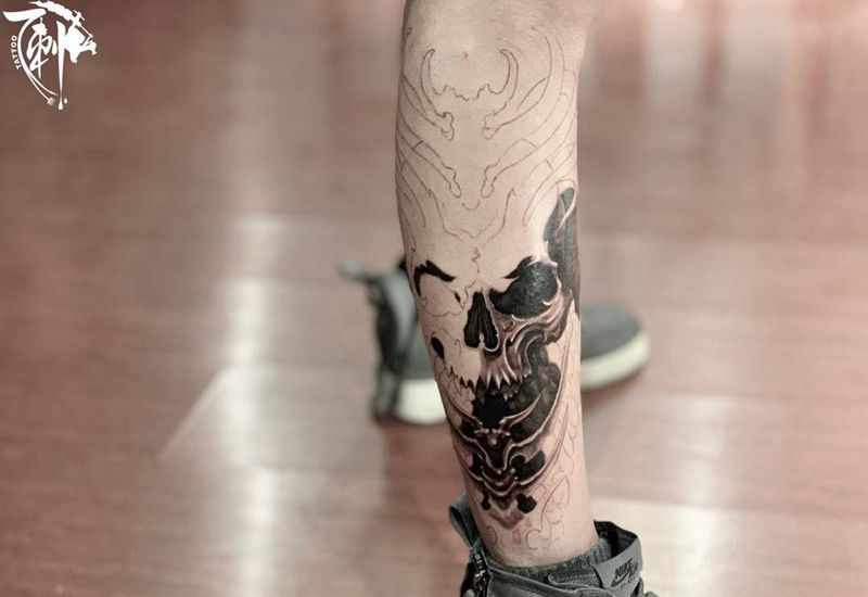 • T网红王老大花腿龙纹身图片_腿部新传统纹身图案