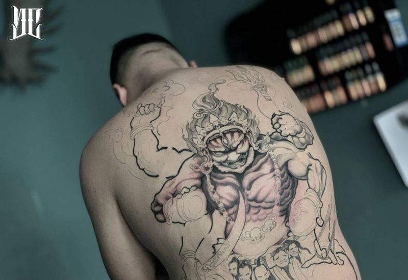 • H传统钟馗纹身 钟馗过肩纹身图案