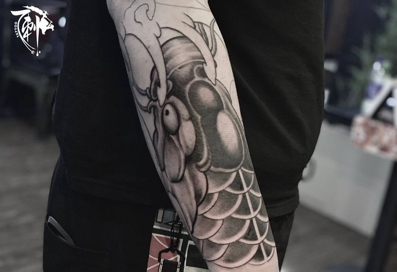 黑灰满背纹身图案
