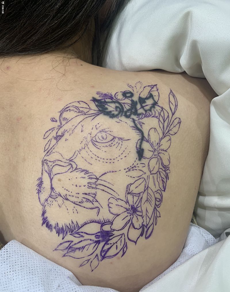 当前位置: 首页 >北京市纹身店-北京花刺纹身工作室纹身图案>遮盖纹身图片_肩部背部欧美写实狮子纹身图案