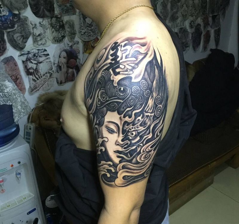 今日工作一念之间完成!纹身图片_成品手臂传统人物宗教鬼神纹身图案