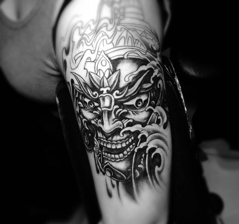 今日工作黑灰完成下次彩色扎起!纹身图片_手臂传统人物鬼神宗教纹身图案