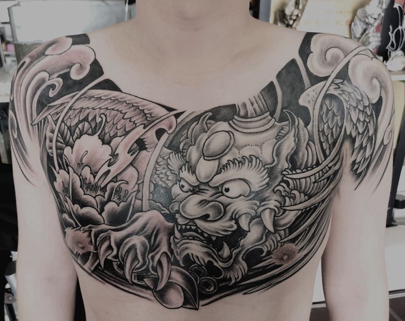 黑灰满背纹身图案