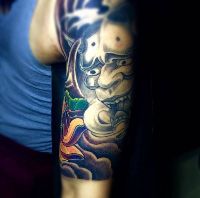 当前位置: 首页 >北京市纹身店-北京花刺纹身工作室纹身图案>今日作品未完成!来自呼伦贝尔的客人纹身图片_手臂传统植物人物鬼神纹身图案