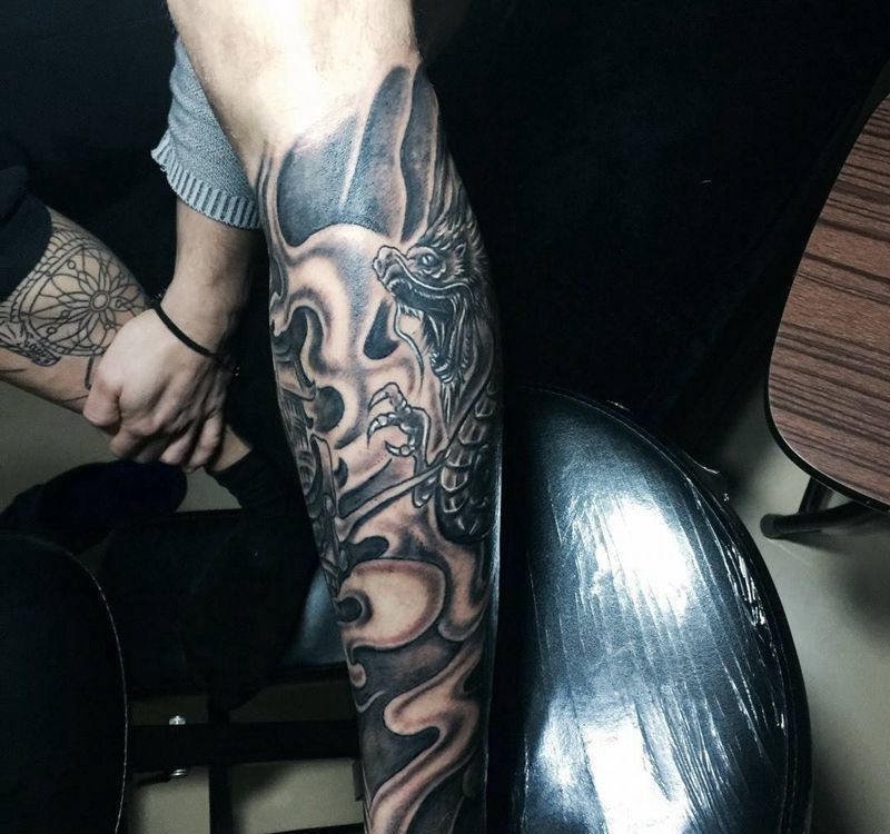 • T网红王老大花腿龙纹身图片_腿部新传统纹身图案