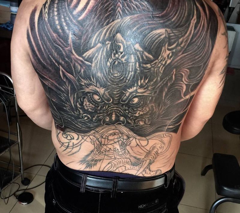 黑灰满背纹身图案
