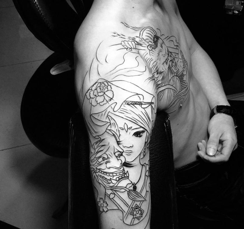 当前位置: 首页 >北京市纹身店-北京花刺纹身工作室纹身图案>今日工作未完待续!!!纹身图片_手臂胸部肩部传统人物动物鬼神宗教纹身图案
