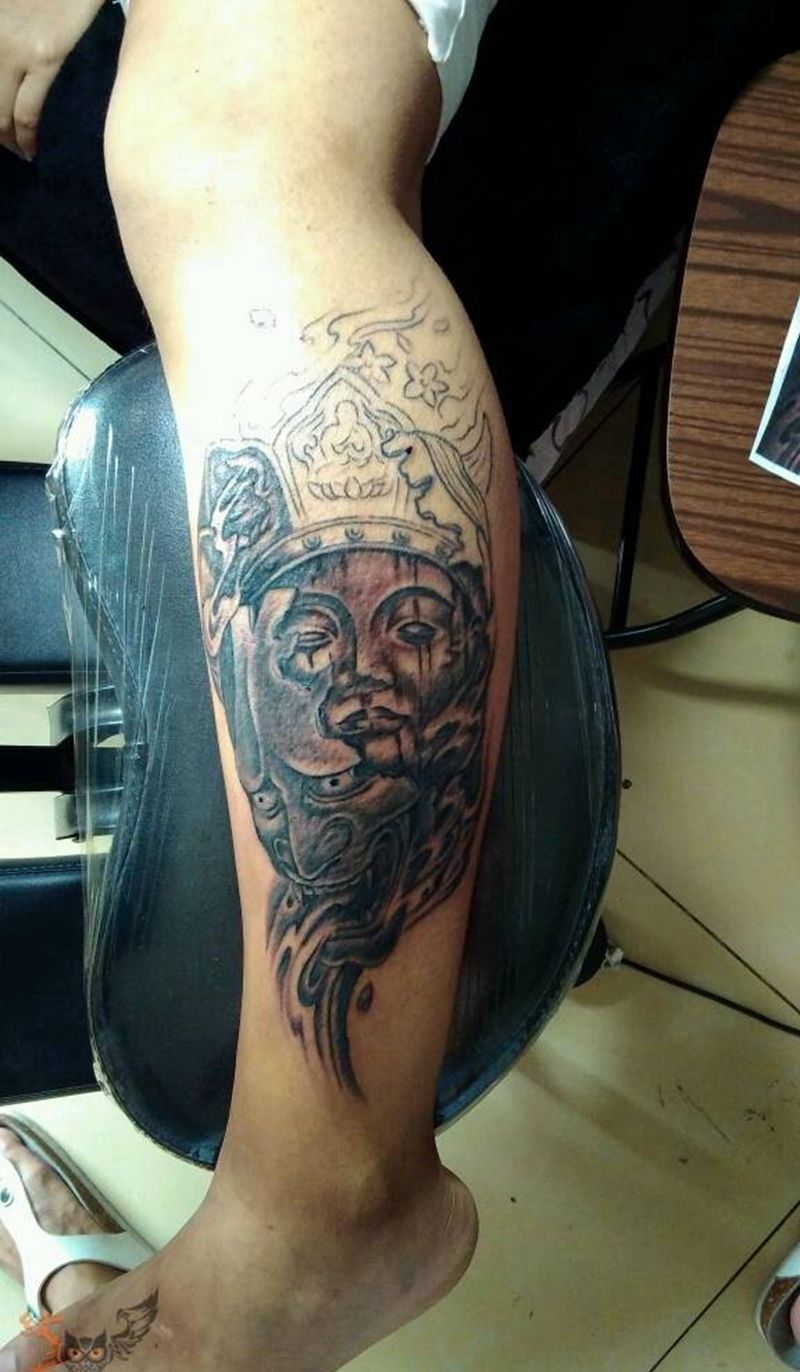 当前位置: 首页 >北京市纹身店-北京花刺纹身工作室纹身图案>小腿一念之间纹身图片_传统腿部鬼神宗教纹身图案