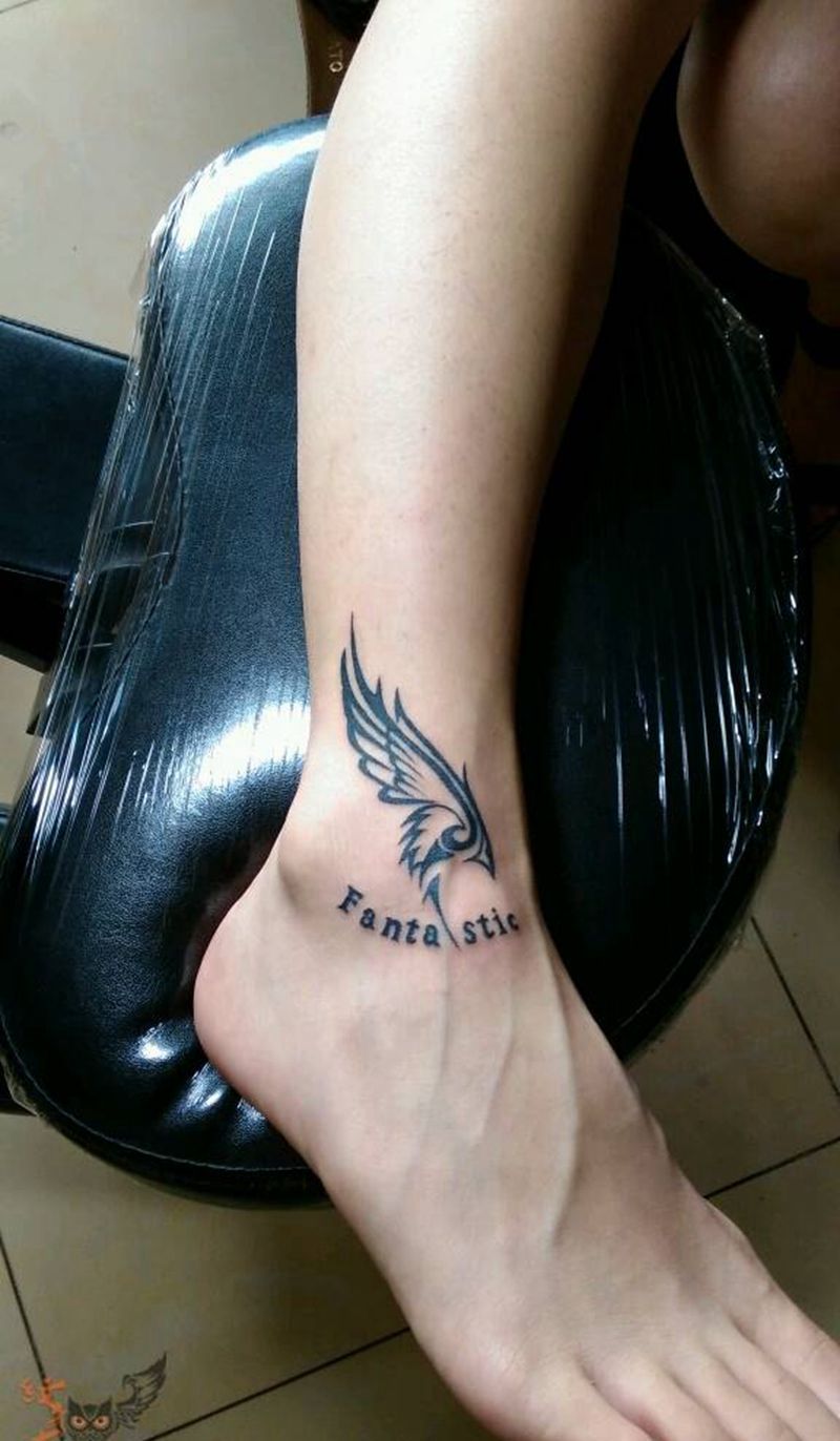 脚踝图腾翅膀纹身图片_欧美腿部图腾纹身图案