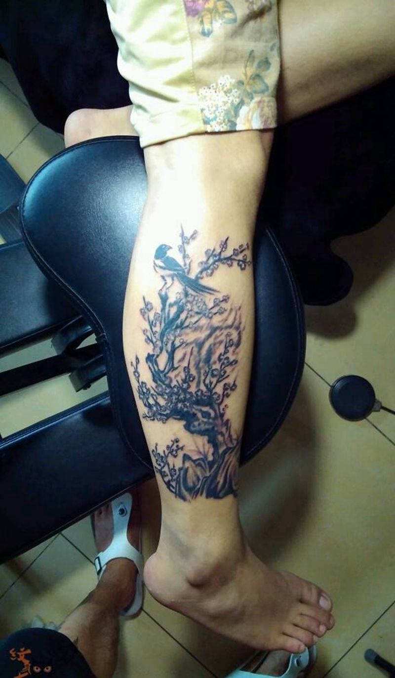 当前位置: 首页 >北京市纹身店-北京花刺纹身工作室纹身图案>国画风纹身图片_传统国画腿部动物植物纹身图案