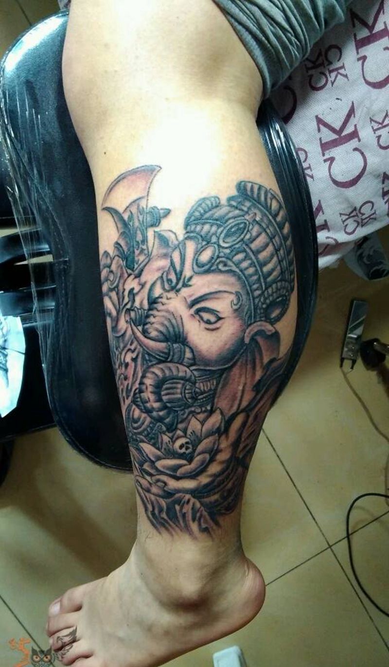 当前位置: 首页 >北京市纹身店-北京花刺纹身工作室纹身图案>小腿象神纹身图片_传统腿部宗教纹身图案
