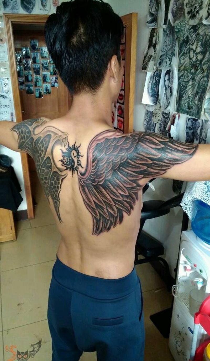 天使恶魔翅膀纹身图片_欧美背部纹身图案