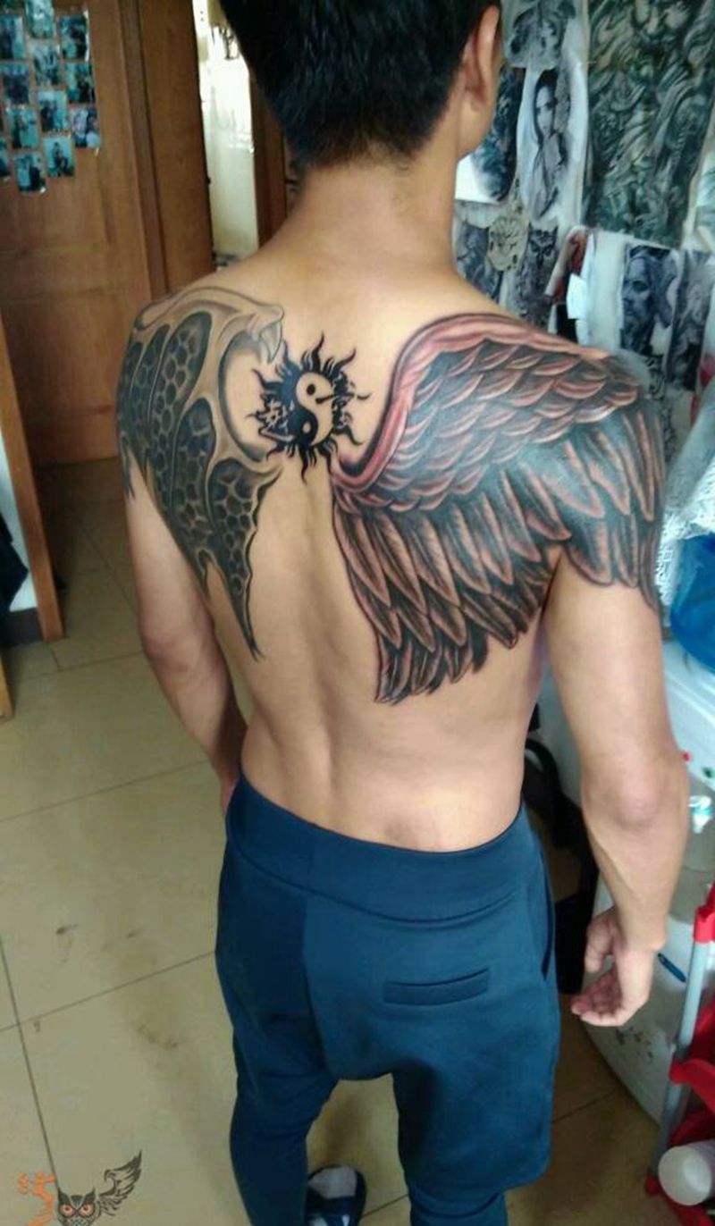 当前位置: 首页 >北京市纹身店-北京花刺纹身工作室纹身图案>天使恶魔翅膀纹身图片_欧美背部纹身图案