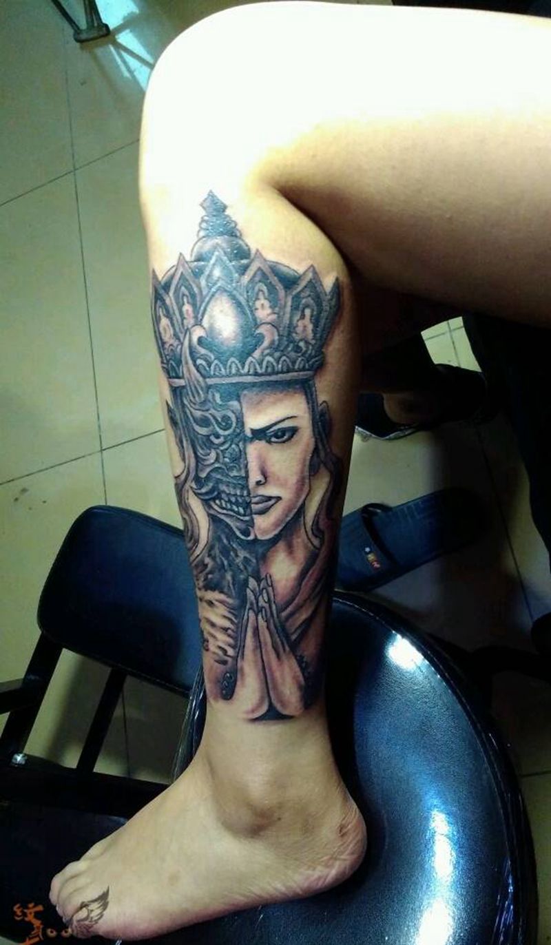 当前位置: 首页 >北京市纹身店-北京花刺纹身工作室纹身图案>小腿一念之间纹身图片_传统腿部鬼神宗教纹身图案
