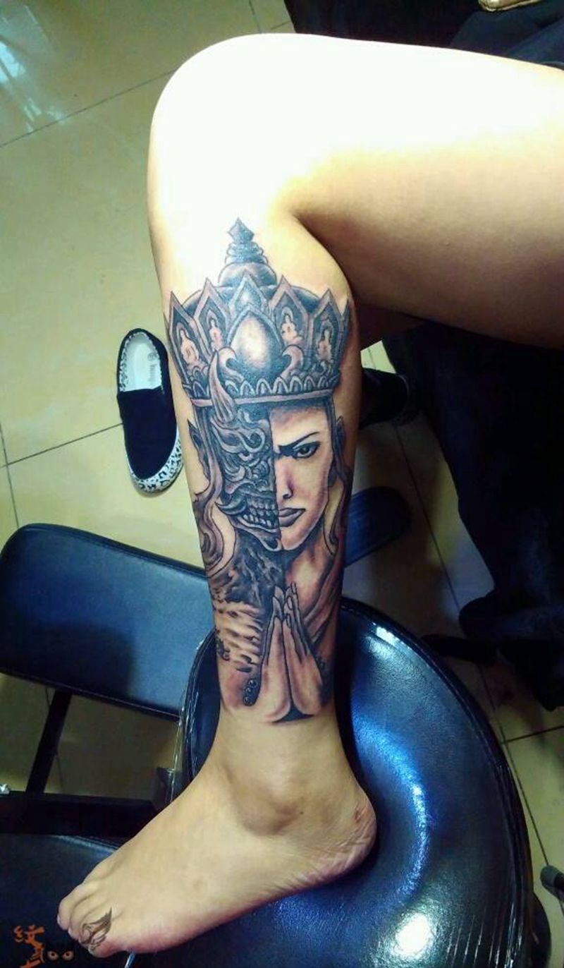 当前位置: 首页 >北京市纹身店-北京花刺纹身工作室纹身图案>小腿一念之间纹身图片_传统腿部鬼神宗教纹身图案