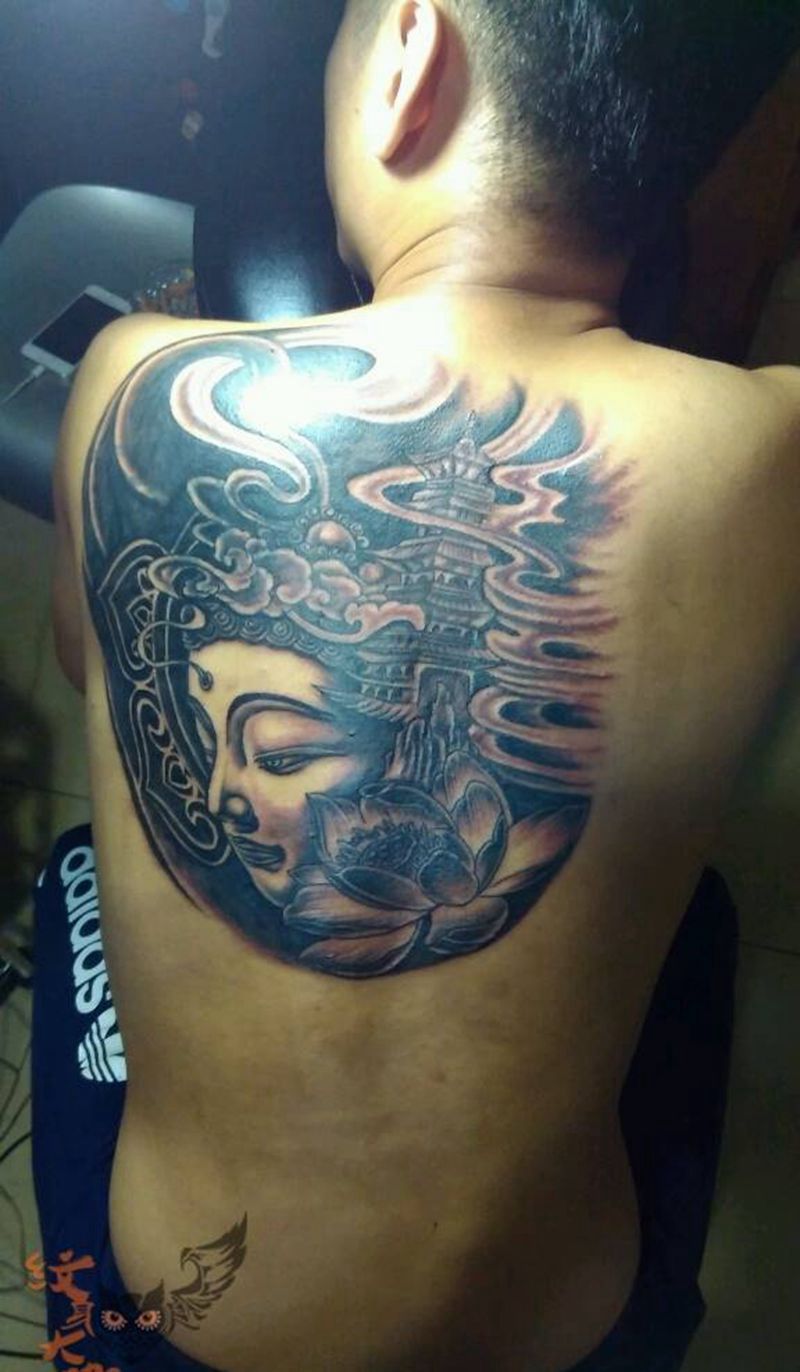 后背遮盖佛纹身图片_传统背部宗教纹身图案