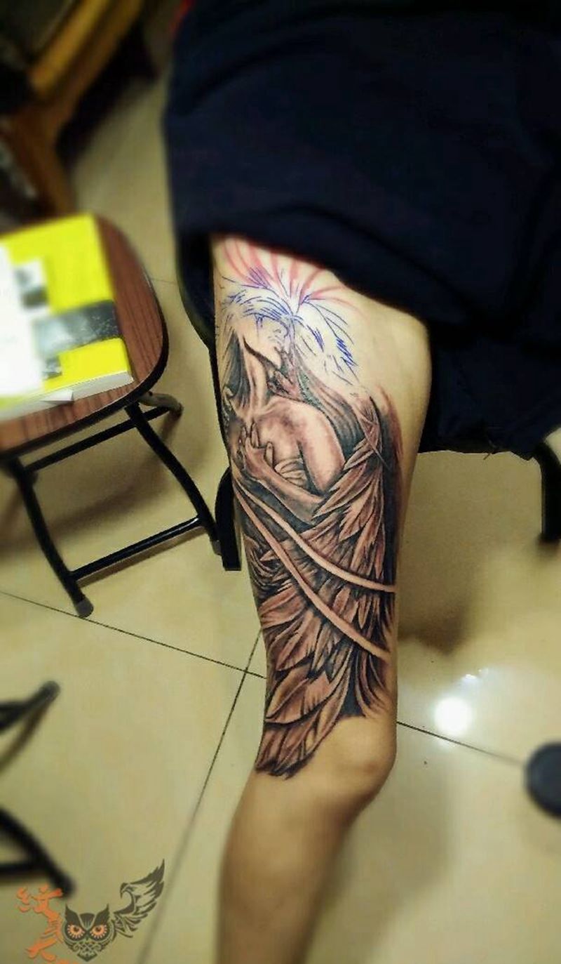 当前位置: 首页 >北京市纹身店-北京花刺纹身工作室纹身图案>大腿折翼天使纹身图片_欧美写实腿部人物纹身图案