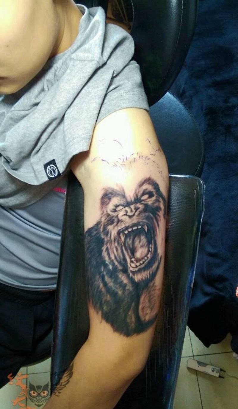大臂遮盖!金刚花絮纹身图片_手臂欧美写实动物纹身图案