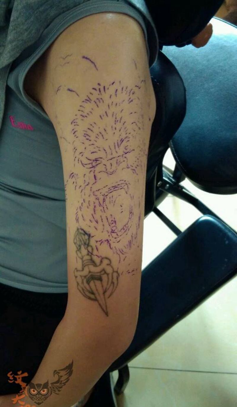 当前位置: 首页 >北京市纹身店-北京花刺纹身工作室纹身图案>大臂遮盖金刚完成纹身图片_手臂欧美写实动物纹身图案