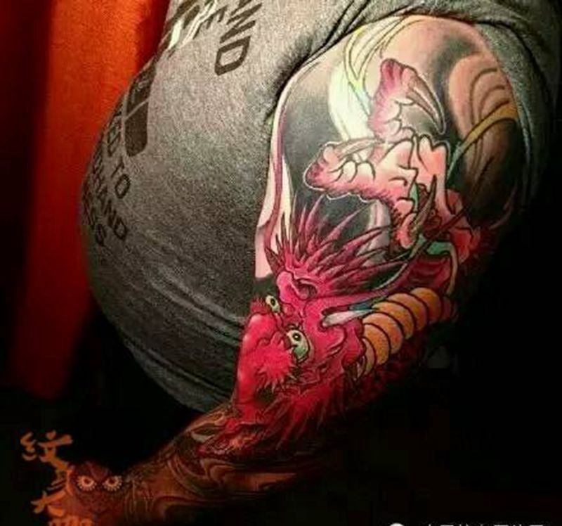 • T网红王老大花腿龙纹身图片_腿部新传统纹身图案