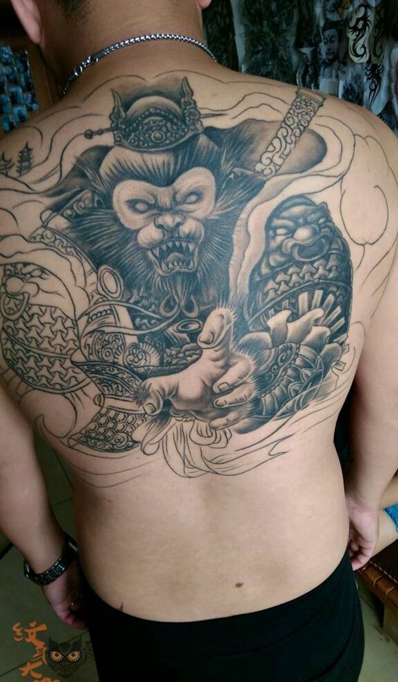 半背大圣纹身图片_背部传统人物鬼神宗教纹身图案