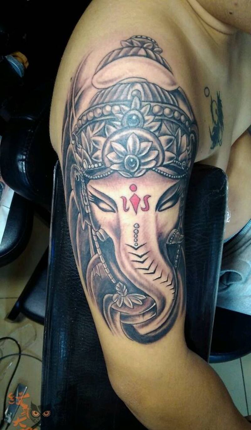 今日作品大臂象神!纹身图片_手臂传统鬼神宗教纹身图案