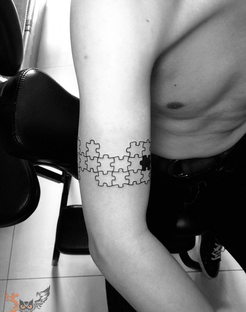 今日作品拼图臂环纹身图片_手臂几何清新纹身图案