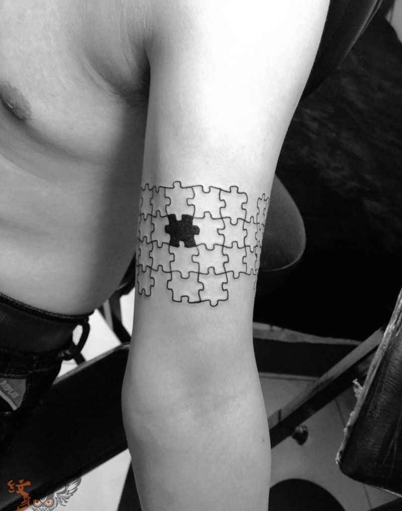今日作品拼图臂环纹身图片_手臂几何清新纹身图案