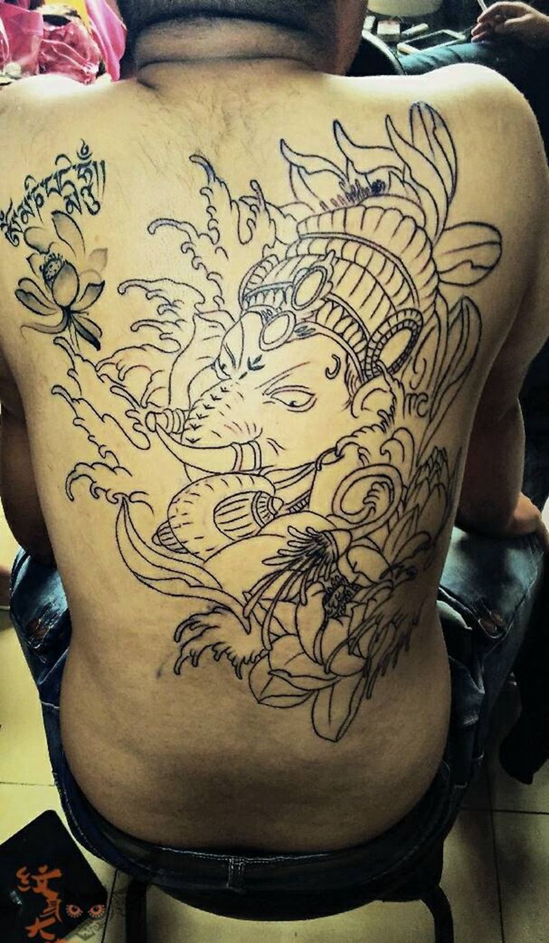 作日工作!改装象神未完待续!纹身图片_背部传统人物鬼神宗教纹身图案