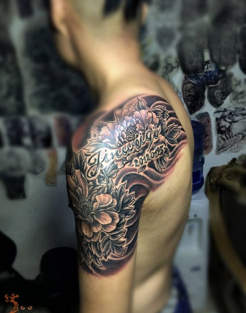 昨日凌晨作品完成!纹身图片_传统字符手臂背部植物纹身图案