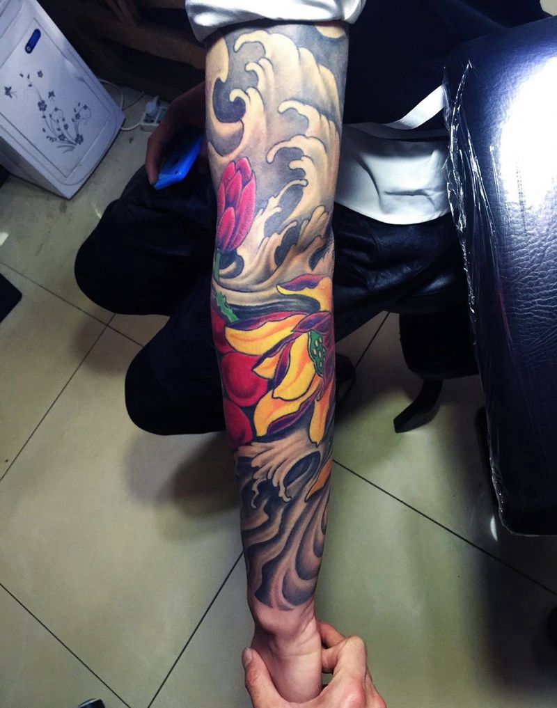 当前位置: 首页 >北京市纹身店-北京花刺纹身工作室纹身图案>今日作品花臂补色!纹身图片_成品手臂传统人物植物纹身图案