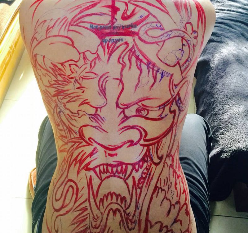 当前位置: 首页 >北京市纹身店-北京花刺纹身工作室纹身图案>今日工作满背割线未完待续纹身图片_背部传统人物动物宗教鬼神植物纹身图案
