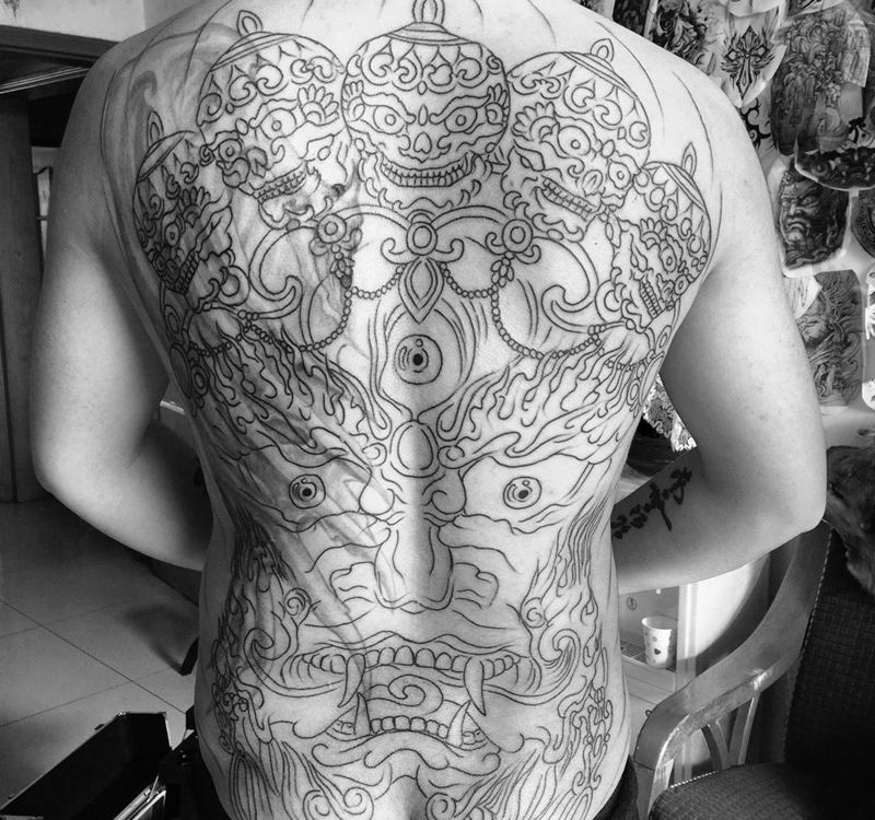 年前最后一个遮盖满背。年后继续纹身图片_背部传统人物宗教纹身图案