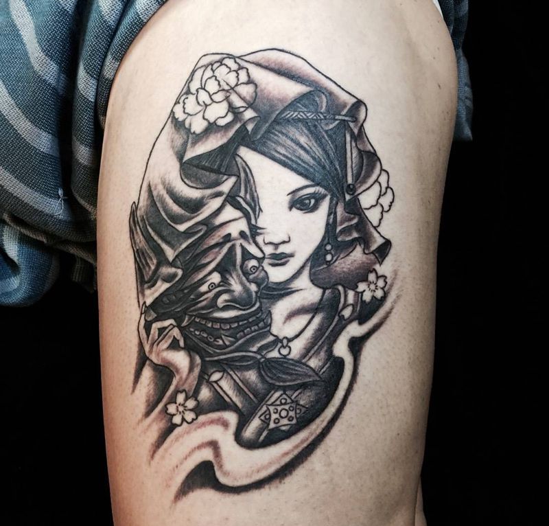 黑灰满背纹身图案