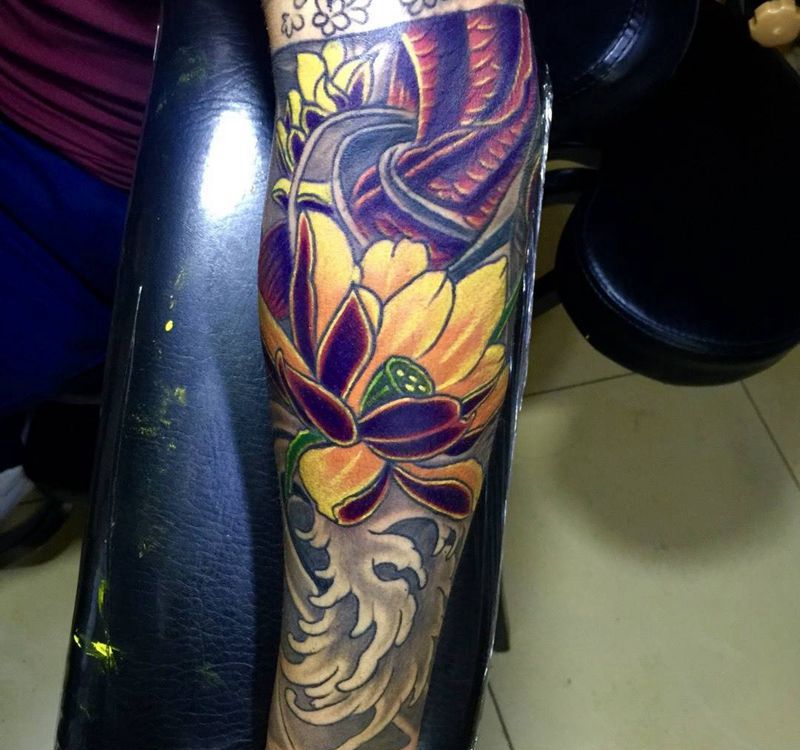 • T网红王老大花腿龙纹身图片_腿部新传统纹身图案