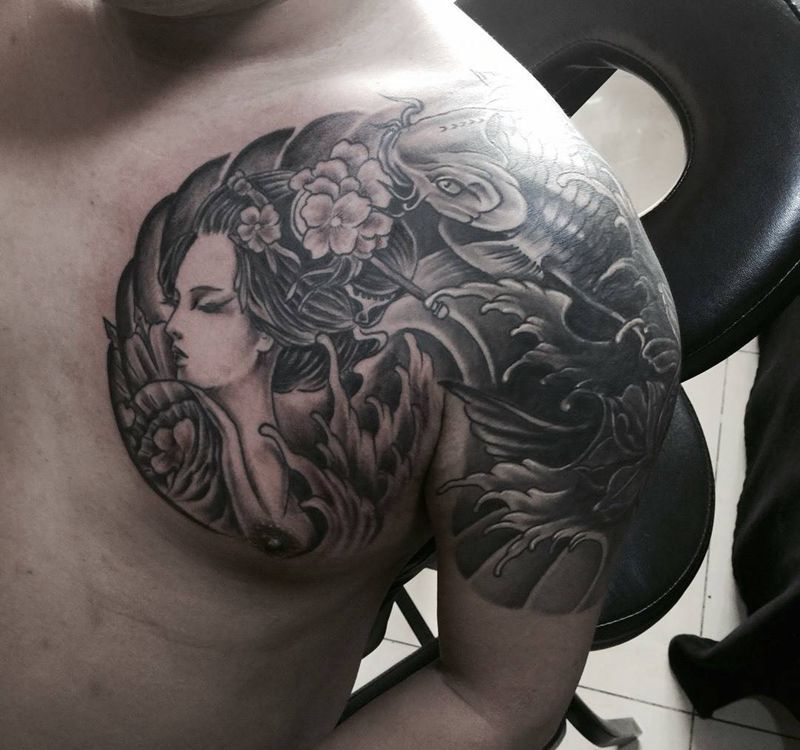 • 纹身吧推荐的披肩图腾半胛纹身图案作品展示