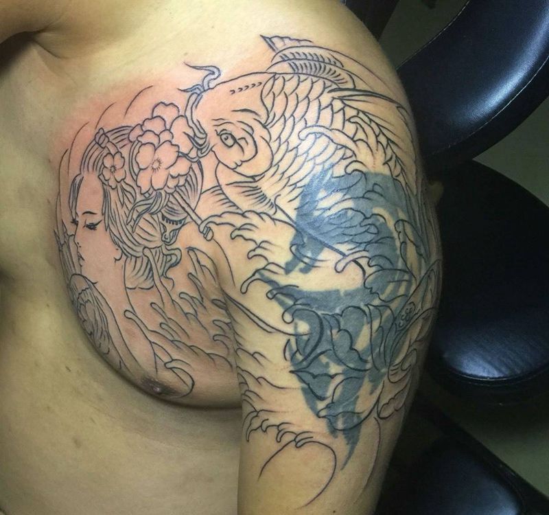 当前位置: 首页 >北京市纹身店-北京花刺纹身工作室纹身图案>今日工作大臂遮盖接半甲完成纹身图片_