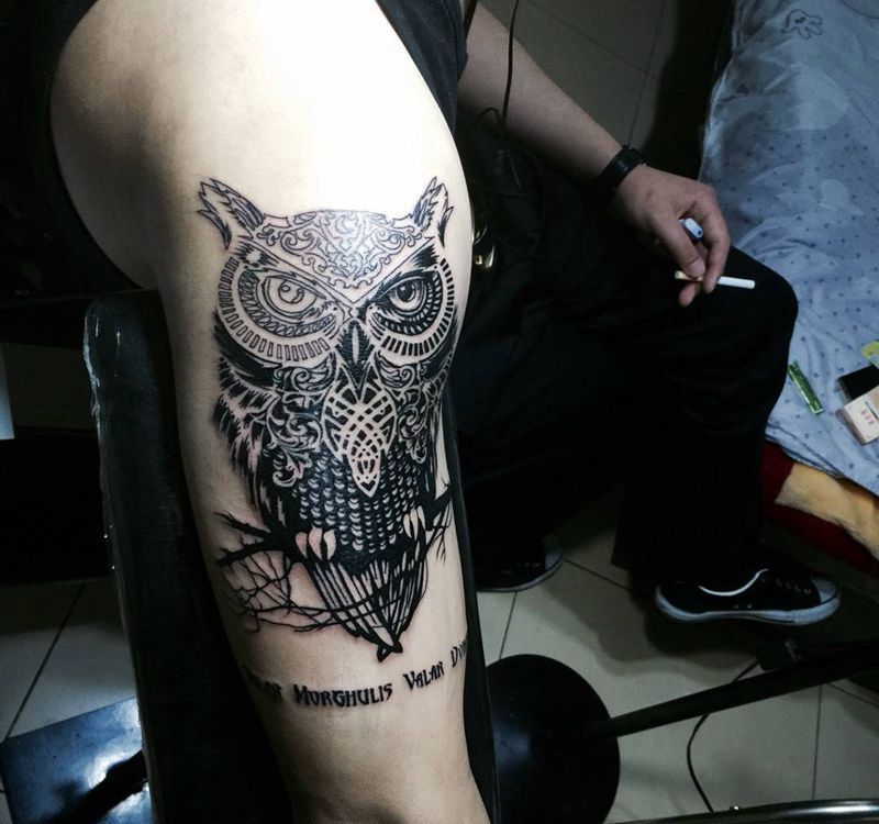 今日工作猫头鹰完成!纹身图片_成品欧美手臂图腾纹身图案