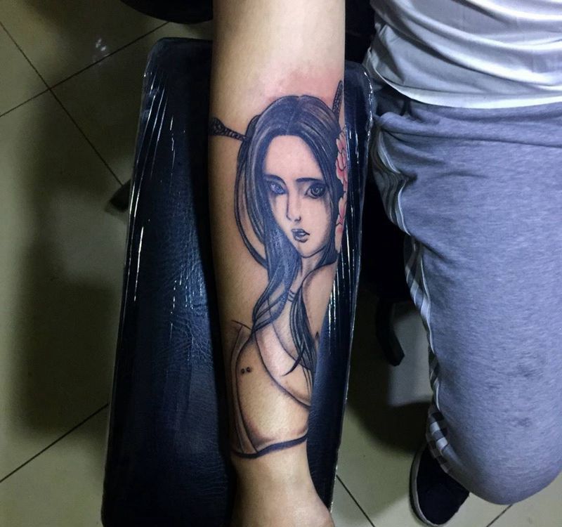 当前位置: 首页 >北京市纹身店-北京花刺纹身工作室纹身图案>今日作品小妞儿一枚纹身图片_成品手臂传统人物纹身图案