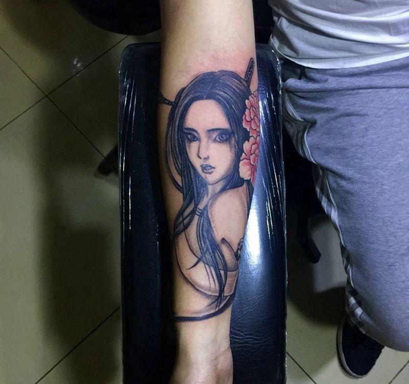 今日作品小妞儿一枚纹身图片_成品手臂传统人物纹身图案