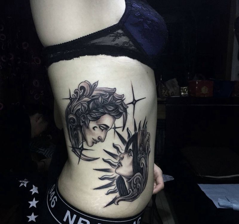 昨晚工作来自韩国美女纹身图片_成品腰部欧美人物纹身图案