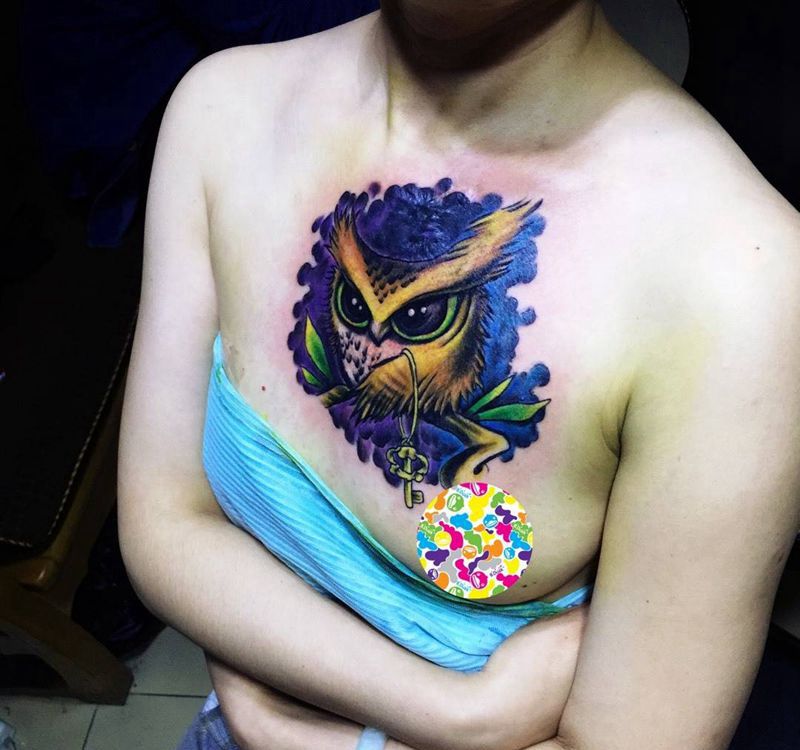 当前位置: 首页 >北京市纹身店-北京花刺纹身工作室纹身图案>今日工作胸前遮盖猫头鹰完成纹身图片_