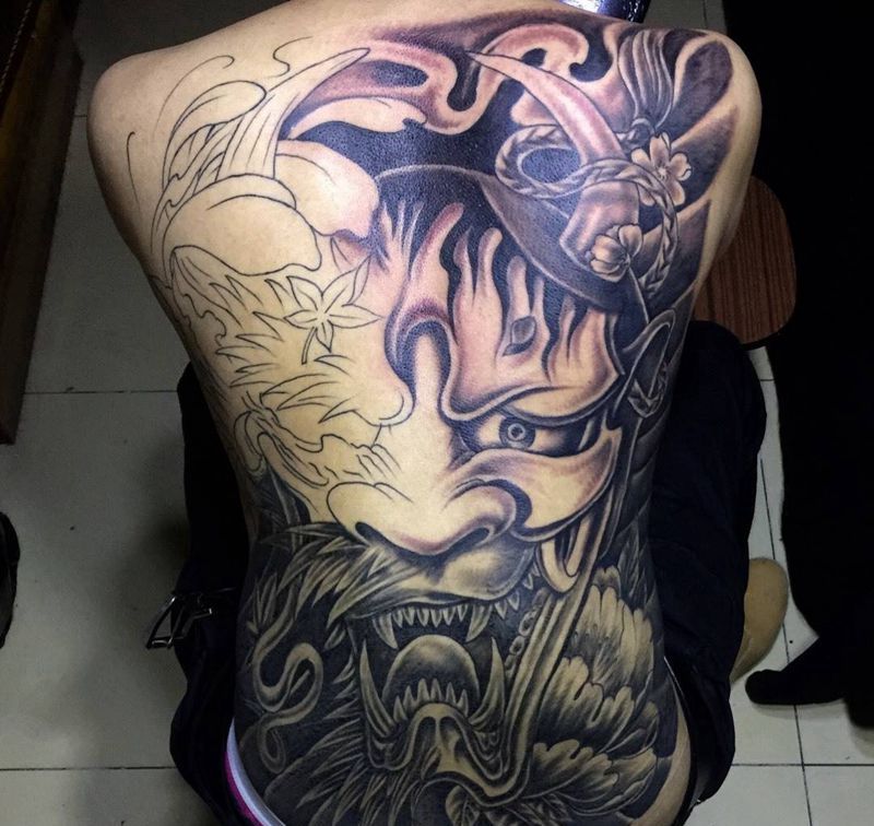 • 黑灰满背纹身图案