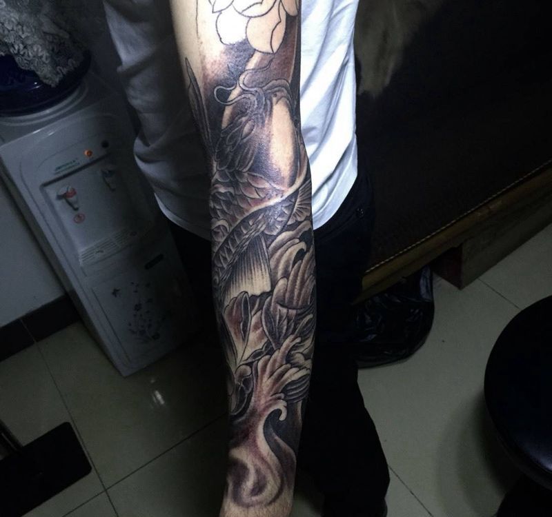 今日工作花臂未完成纹身图片_手臂传统动物植物纹身图案