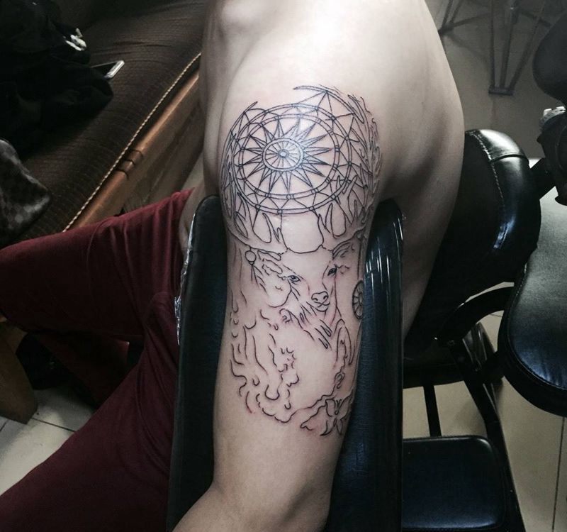 • 纹身吧推荐的披肩图腾半胛纹身图案作品展示